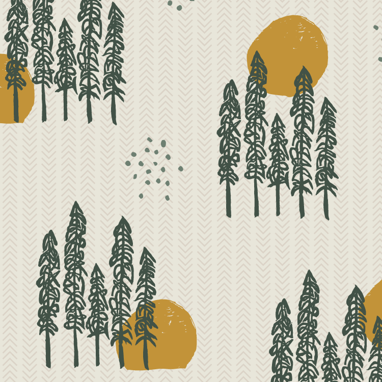 I bring a playful sense of adventure to her my work by combing natural elements with structured geometrics. My work is inspired by the nature and my own adventures. I combine traditional relief printing, found objects, hand drawn elements and digital illustration. Through this exploration, I create fun, nature inspired patterns that evoke a sense of wonder and excitement.